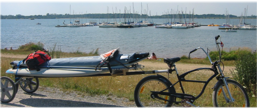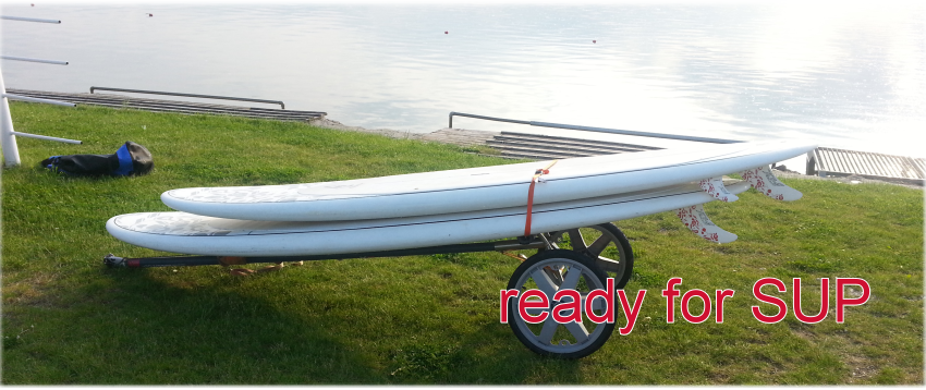 Herzlich willkommen bei Surf-Express.de Sie möchten schnell und unkompliziert Ihre Surfausrüstung ohne Auto transportieren ?? -->dann sind Sie hier richtig. Mit den ”Surf-Express” kann man schnell, sicher und unkompliziert eine komplette Windsurfausrüstung transportieren . Einfach zusammengesteckt , Surfausrüstung aufladen und los geht's. Passt für alle Boards und Bikes-auch für Sup Boards. Der Fahrradanhänger liegt sicher auf der Strasse und hält auch schlechten Wegen stand. Kippstabil und leichtgängig überwindet man auch längere Distanzen. Der Trailer wurde so konzipiert, daß er schnell auseinandergebaut ins Auto, Wohnmobil oder ins Reisegepäck passt. Das Fahrgestell besteht aus Edelstahl und wurde robust ausgelegt. Die Laufräder sind steckbar, Kugel gelagert und qualitativ hochwertig. Von der eigenen Surfausrüstung werden nur Mastunterteil und Mastfuss benötigt. Für den Transport von SUP Boards wird zusätzlich ein Mast mit Mastfuss benötigt. Die Kupplung wird Werkzeuglos am Bike montiert . |