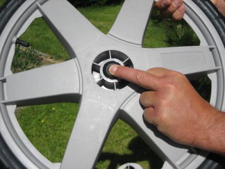 | Räder einstecken---> einfach zu verriegeln | Mast in Fühungsrohr stecken | Zugseil im Maßtfuss einklemmen |